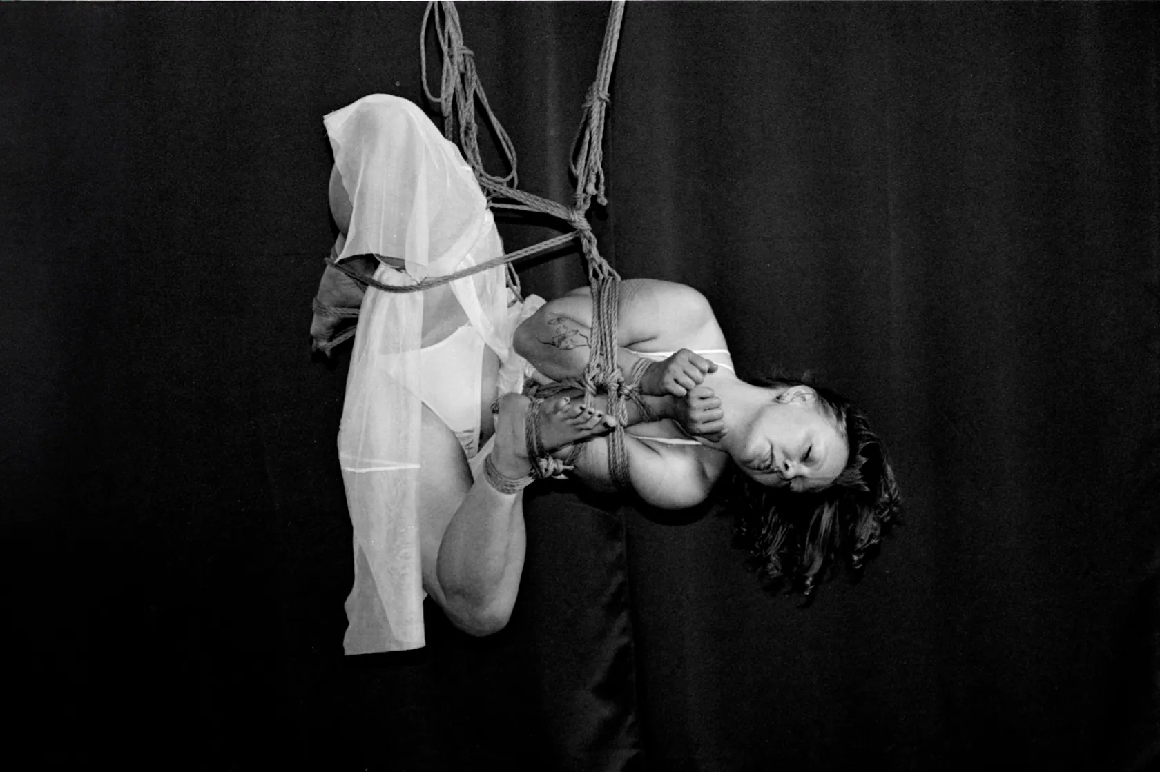 Full roll of black and white film photography from a single rope session. 35mm film captures honest moments of tension, breath, and connection in monochrome.